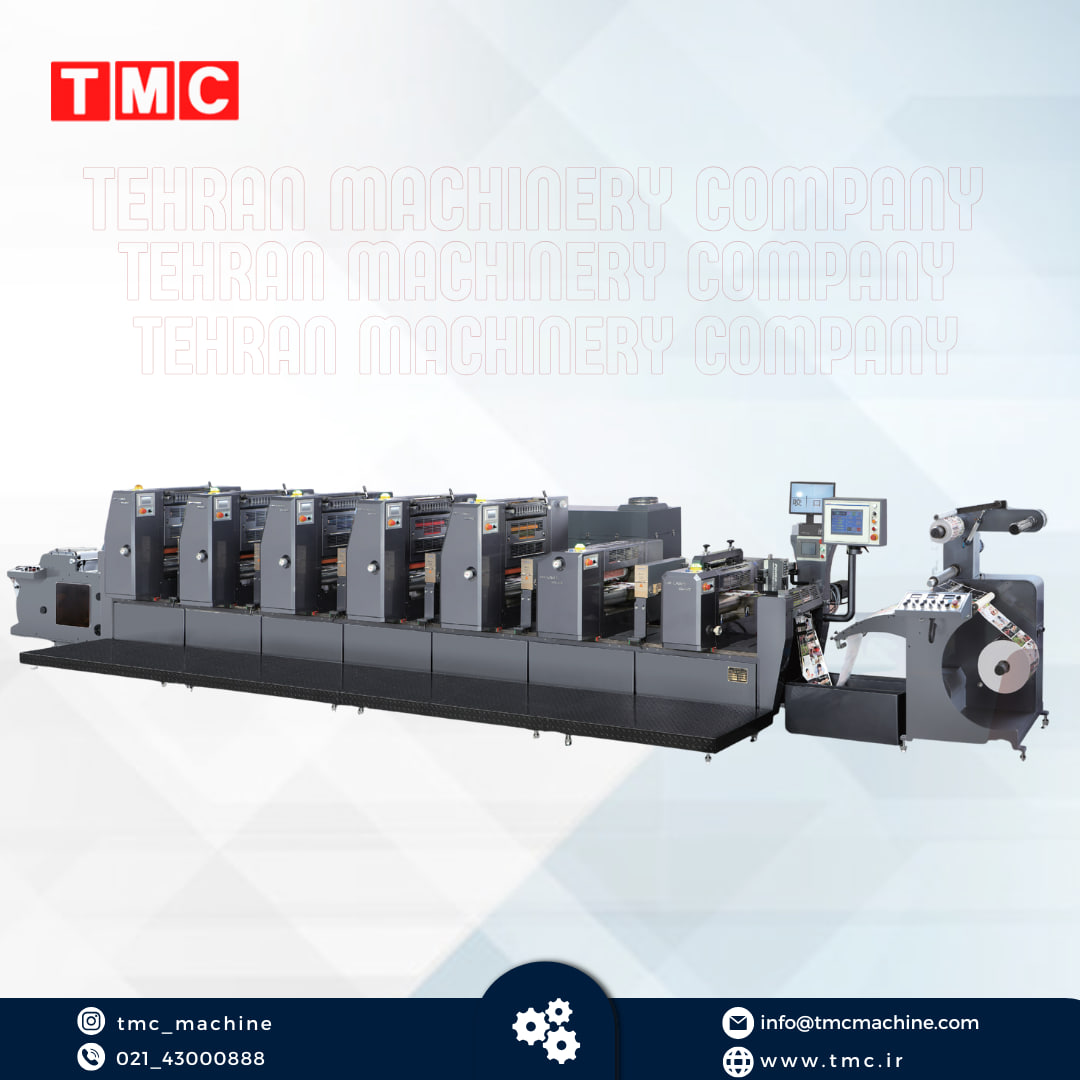 دستگاه چاپ افست لیبل رول به رول با چاپ نوبتی، دقت بالا، چاپ چندرنگ، خشک‌کن یووی، سروو موتور مستقل و مناسب برای انواع لیبل‌های چسبدار